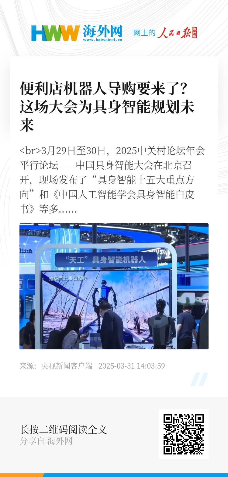 3月29日至30日,2025中关村论坛年会平行论坛——中国具身智能大会在北京召开,现场发布了“具身智能十五大重点方向”和《中国人工智能学会具身智能白皮书》等多项成果。