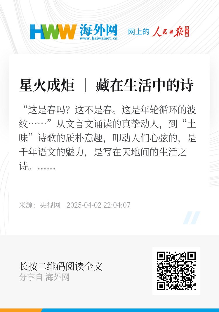 “这是春吗?这不是春。这是年轮循环的波纹……”从文言文诵读的真挚动人,到“土味”诗歌的质朴意趣,叩动人们心弦的,是千年语文的魅力,是写在天地间的生活之诗。