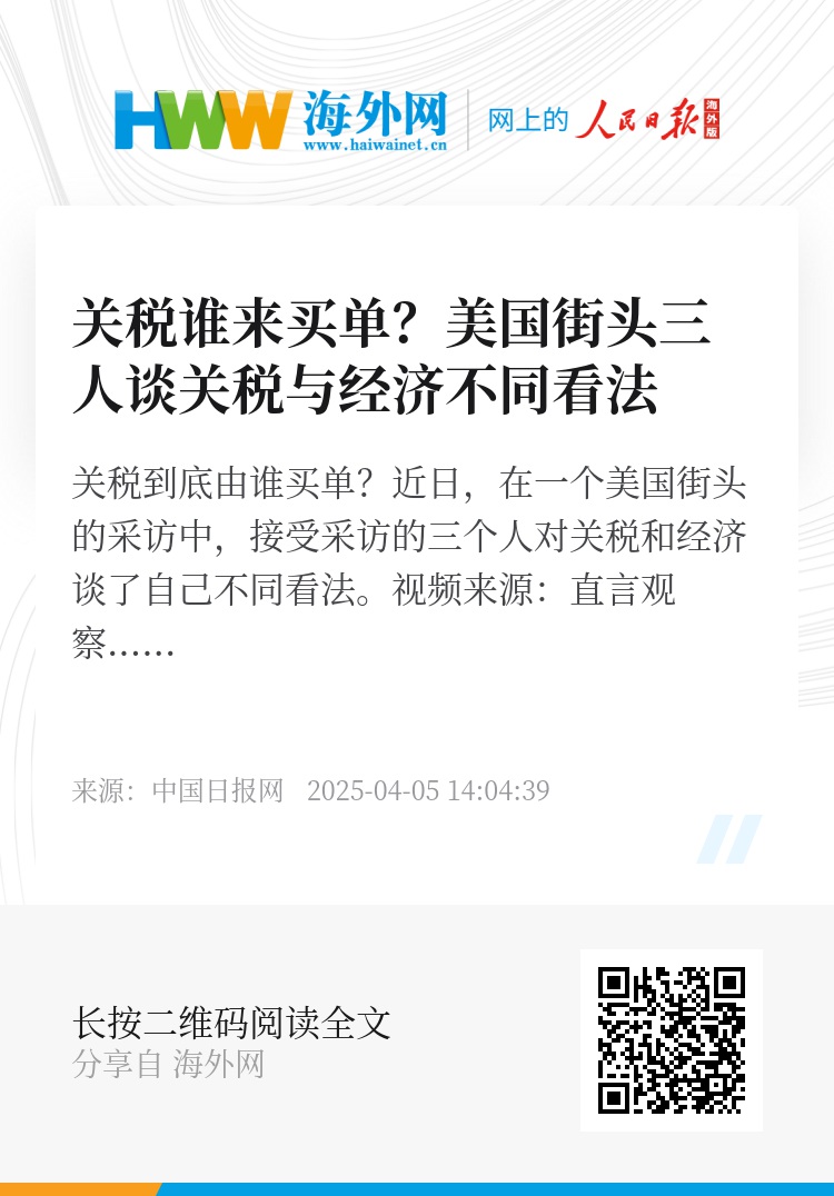 关税到底由谁买单?近日,在一个美国街头的采访中,接受采访的三个人对关税和经济谈了自己不同看法。