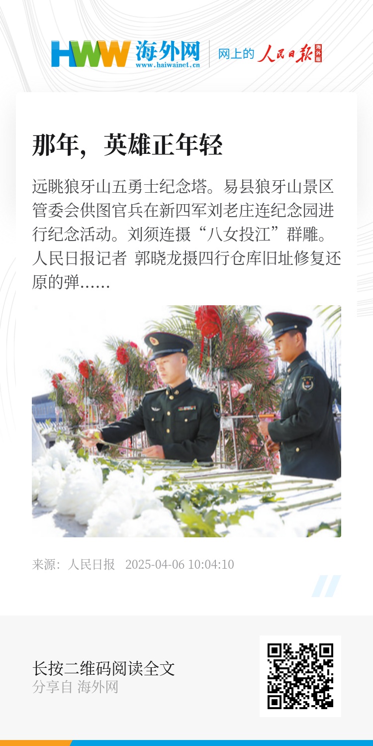 清明之际,人民日报记者探访这4处抗战英烈纪念设施,重温英烈的抗战事迹,讲述各界赓续伟大抗战精神的传承故事,凝聚奋勇前行的精神力量。