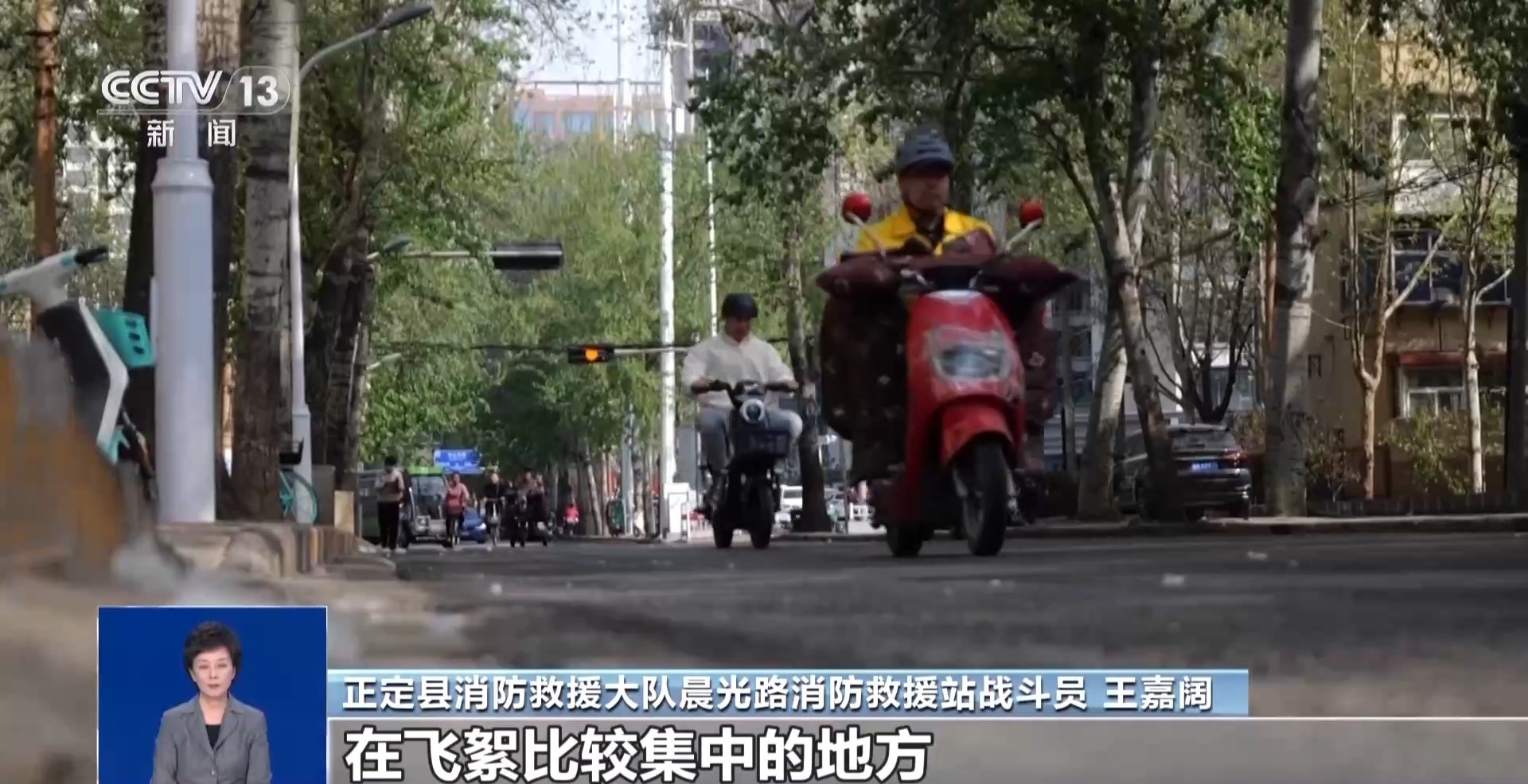 石家庄市正定县消防救援大队晨光路消防救援站战斗员 王嘉阔:提醒大家严禁随意点燃柳絮,在飞絮和杨絮比较集中的地方,不要停放电动车或者是汽车,因为在以往我们处置的案例中,就有一些是因为电车的电瓶或者是线路而引发的故障,引发的火灾,所以要可能避免这些情况的发生。