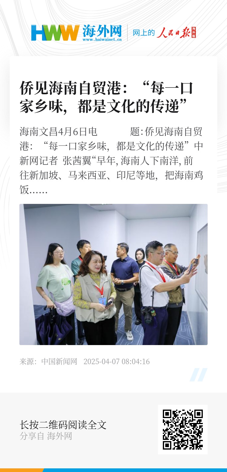 中新网海南文昌4月6日电 题:侨见海南自贸港:“每一口家乡味,都是文化的传递”