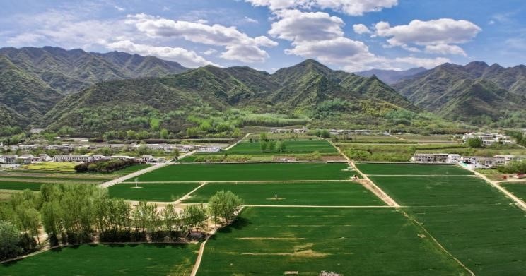 位于秦岭山脚下的西安市鄠邑区蔡家坡村,麦田绿意盎然。摄影:郝钟毓 郝雨辰一