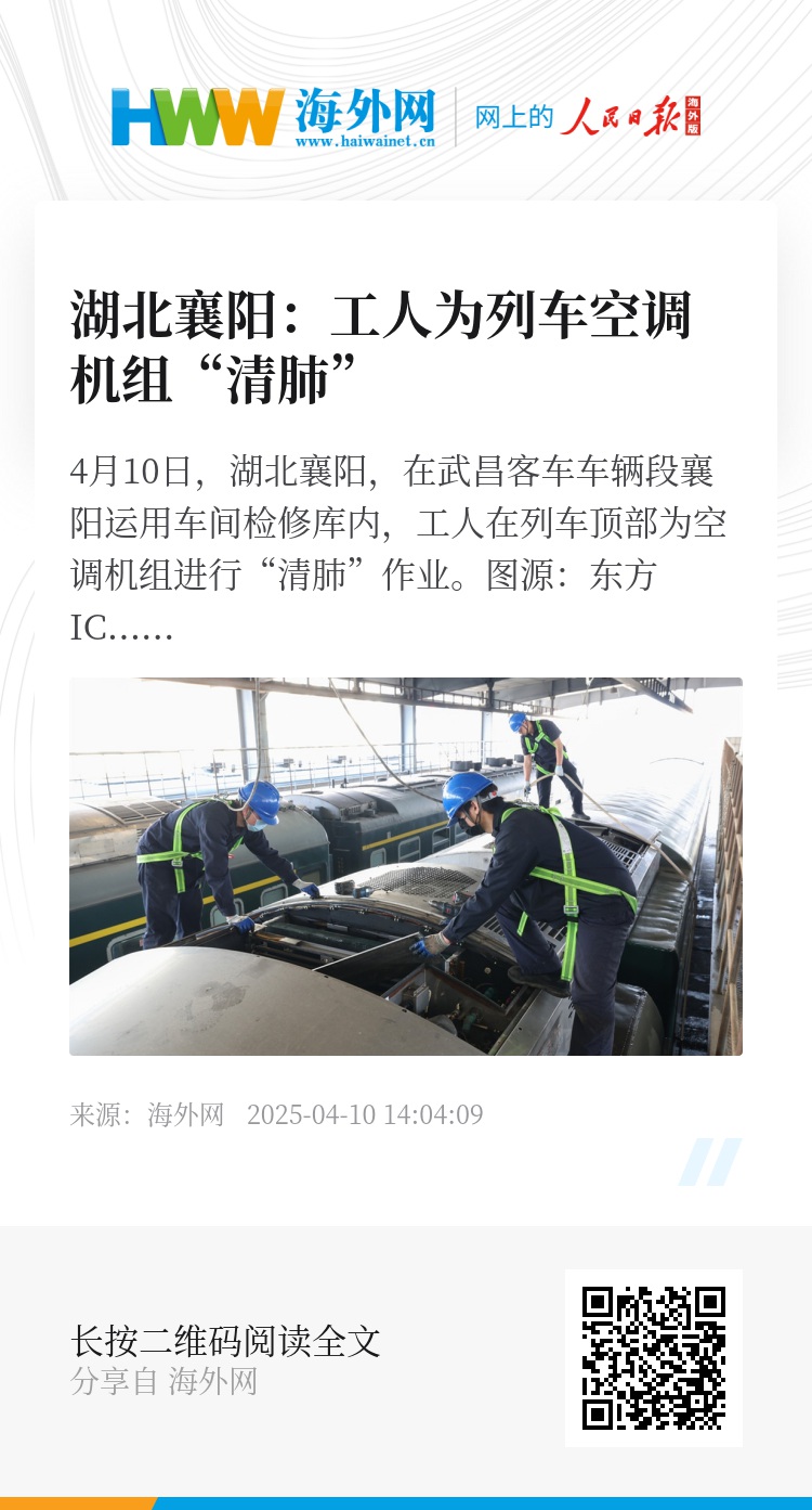 32853441,.湖北襄阳:工人为列车空调机组“清肺”,.2025-04-10 14:40:09,.204309,.陈亚楠、张荣耀