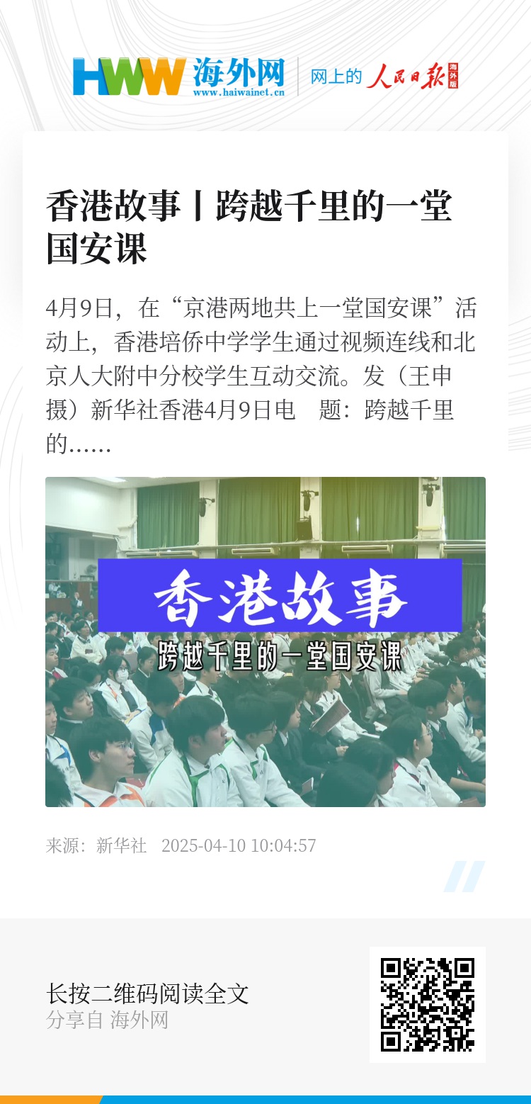 新华社香港4月9日电 题:跨越千里的一堂国安课