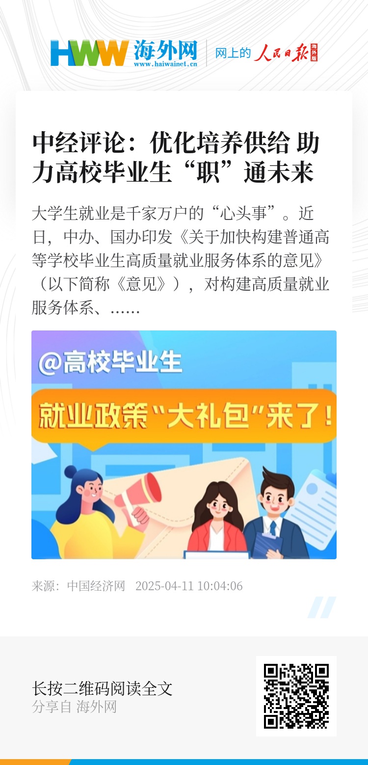 政策的价值,体现在实实在在的获得感上。为经济增长输送充足的人力资源,各方还需持续发力。政府要当好“引路人”,落实税收减免等激励政策,加强就业形势研判和进展监测,编制发布人才需求报告和急需紧缺人才目录,提供多元化、精准化的就业服务。高校和企业要当好“摆渡人”,优化专业设置,深化产教融合,把专业“办在产业链上”,实现产业发展与人才培养同频共振。与此同时,毕业生要当好自己的“掌舵人”,以更积极的心态面对就业,主动提升学习能力和职业转换能力,多思考“我想干什么”“我能干什么”,客观评估自身条件,寻找相匹配的岗位。