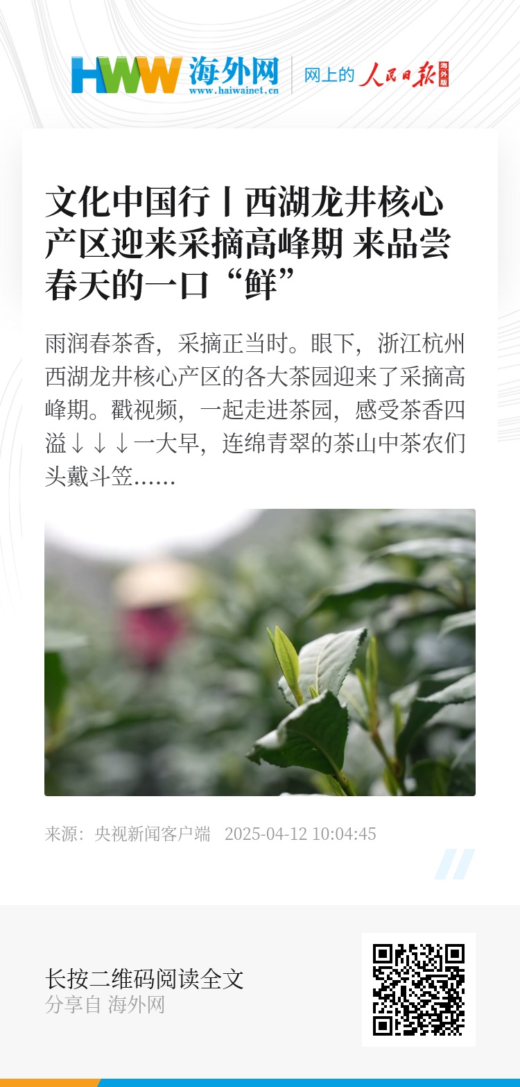 雨润春茶香,采摘正当时。眼下,浙江杭州西湖龙井核心产区的各大茶园迎来了采摘高峰期。戳视频,一起走进茶园,感受茶香四溢↓↓↓