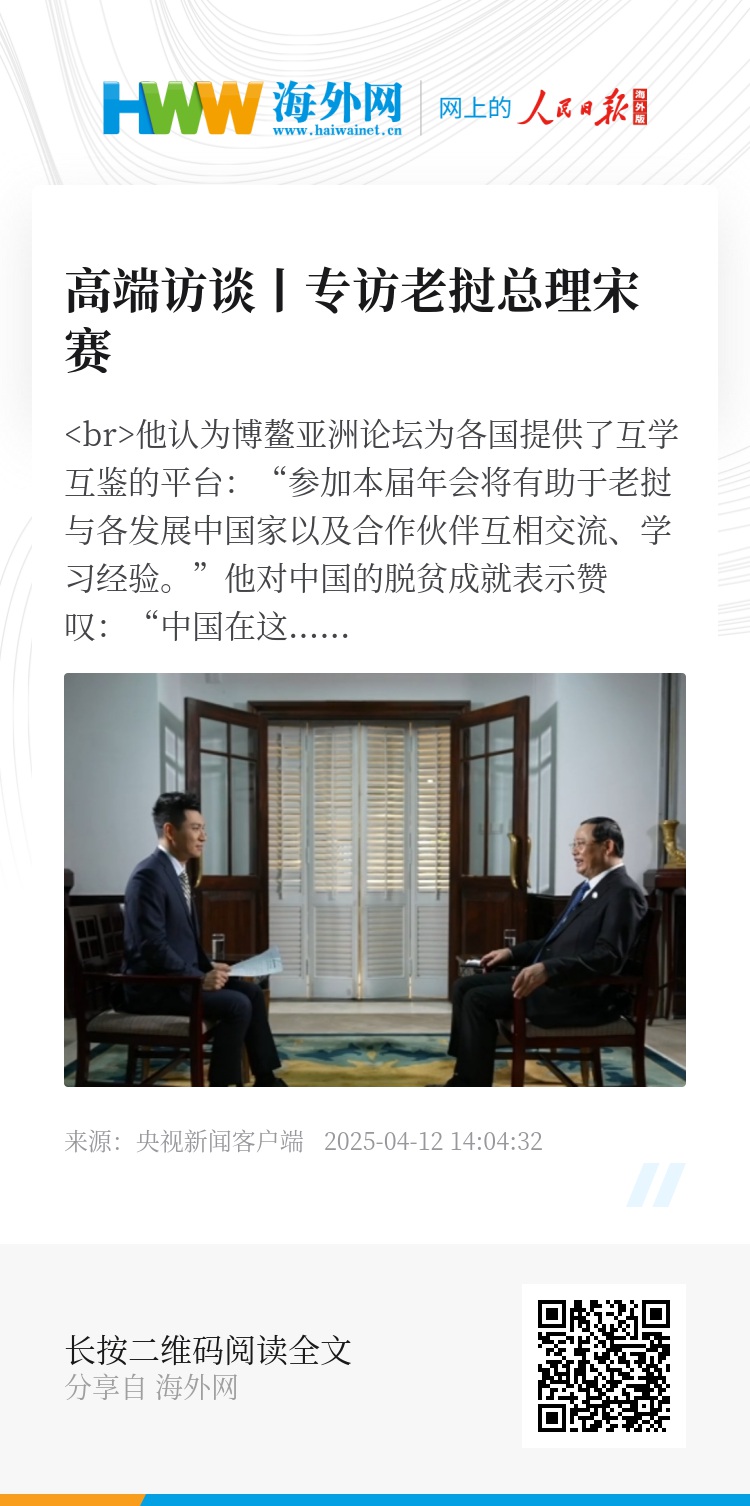 关注国际焦点,洞察世界风云。今天我们将对话的嘉宾是老挝总理宋赛。