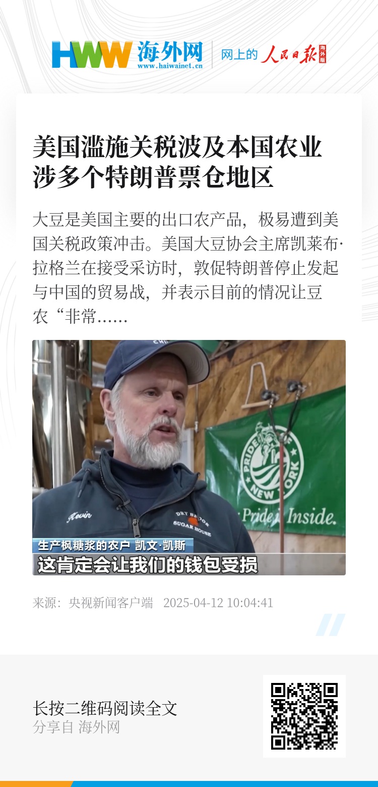 另一家生产枫糖浆的农户也表示,如果关税真的落地,最终只能由美国消费者买单。