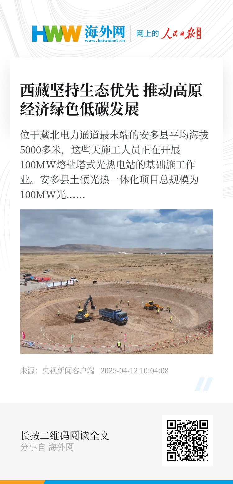 位于藏北电力通道最末端的安多县平均海拔5000多米,这些天施工人员正在开展100MW熔盐塔式光热电站的基础施工作业。安多县土硕光热一体化项目总规模为100MW光热+800MW光伏,预计2026年10月实现并网发电。