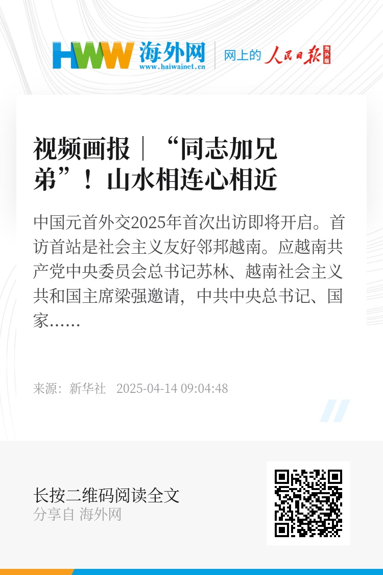 今年正值中国和越南建交75周年。中越山水相连,文化相通。“同志加兄弟”是对两党两国深情厚谊的生动诠释,志同道合、命运与共成为两党两国关系最鲜明特征。当前,中越同处国家发展振兴的关键时期,是改革道路上的同行者、现代化道路上的好伙伴。