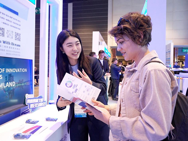 “The GUI has a good innovation ecosystem.”“The products of this company are very interesting and lead the industry.”展会现场,伴随着中英文的来回切换,科大硅谷工作人员既向外国客商推介科大硅谷,又介绍片区企业的展品与技术,推动合作向纵深推进。