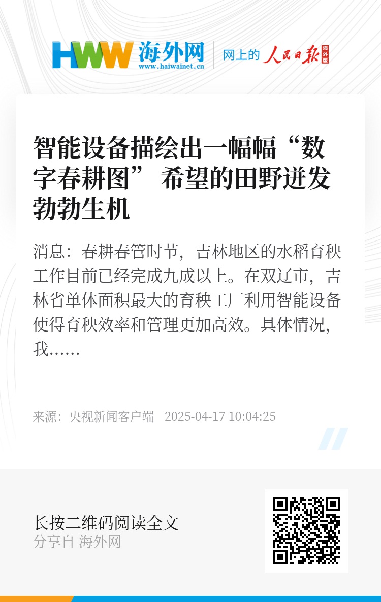 央视网消息:春耕春管时节,吉林地区的水稻育秧工作目前已经完成九成以上。在双辽市,吉林省单体面积最大的育秧工厂利用智能设备使得育秧效率和管理更加高效。具体情况,我们来连线正在现场的总台记者王亚平。