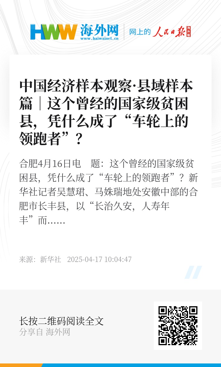新华社合肥4月16日电 题:这个曾经的国家级贫困县,凭什么成了“车轮上的领跑者”?