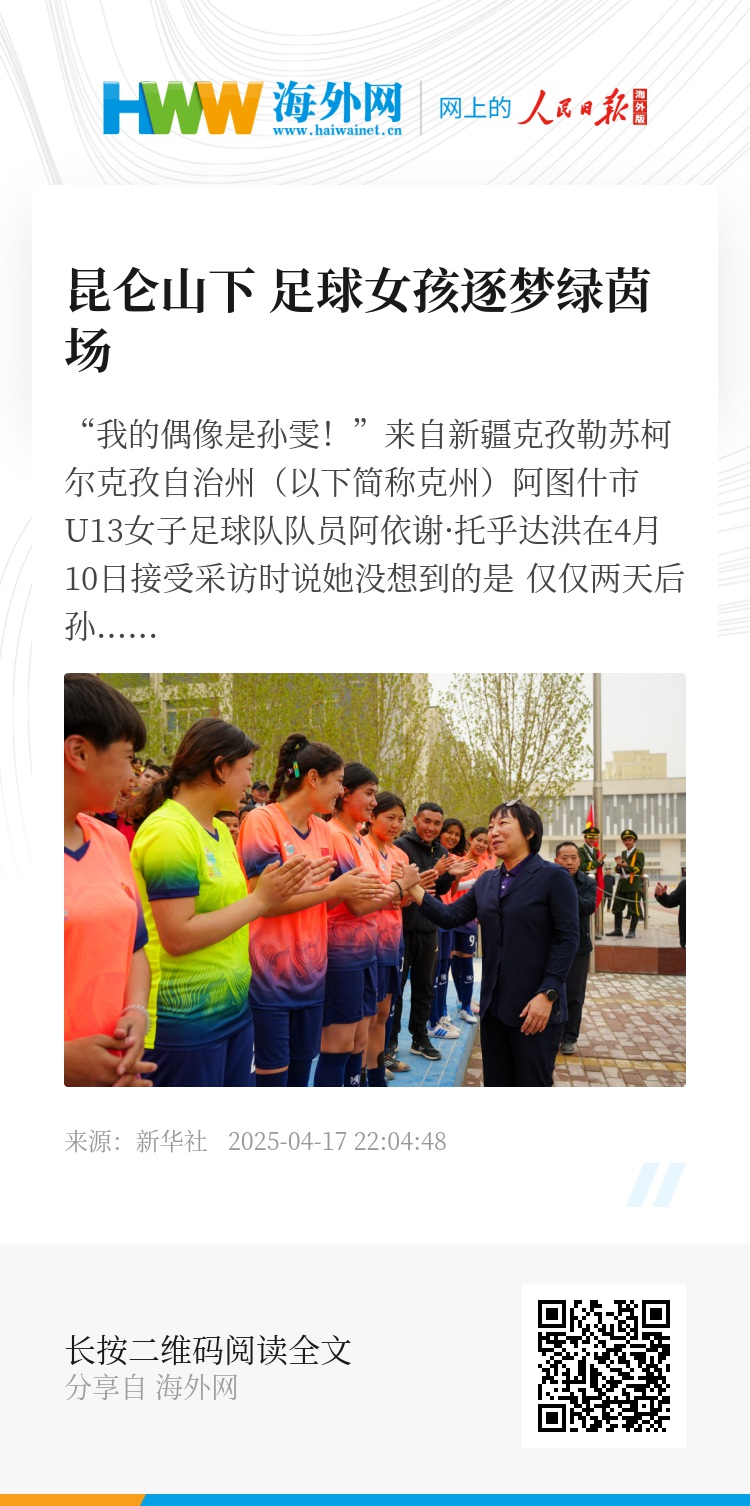 ↑4月12日,在2025新疆克孜勒苏柯尔克孜自治州足球联赛开幕式后,中国足协副主席、前中国国家女子足球队球员孙雯(前)与阿图什市U13女子足球队合影。新华社记者 徐宏岩 摄