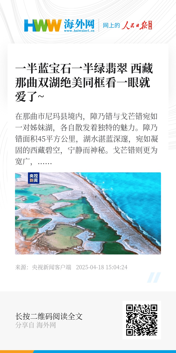 在那曲市尼玛县境内,障乃错与戈芒错宛如一对姊妹湖,各自散发着独特的魅力。障乃错面积45平方公里,湖水湛蓝深邃,宛如凝固的西藏碧空,宁静而神秘。戈芒错则更为宽广,面积达61平方公里,湖水碧绿澄澈,恰似遗落大地的翡翠,清新而灵动。 209省道从两湖之间穿过,将它们分隔,却为这片秘境增添了一条灵动的纽带。在远处群山的环抱之中,湖光山色相互交织,勾勒出一幅如梦如幻的画卷。在这片小众秘境里,两湖交相辉映,共同谱写出一幅高原上最隐秘而绝美的视觉诗篇。(总台记者 多吉仁青 强久)