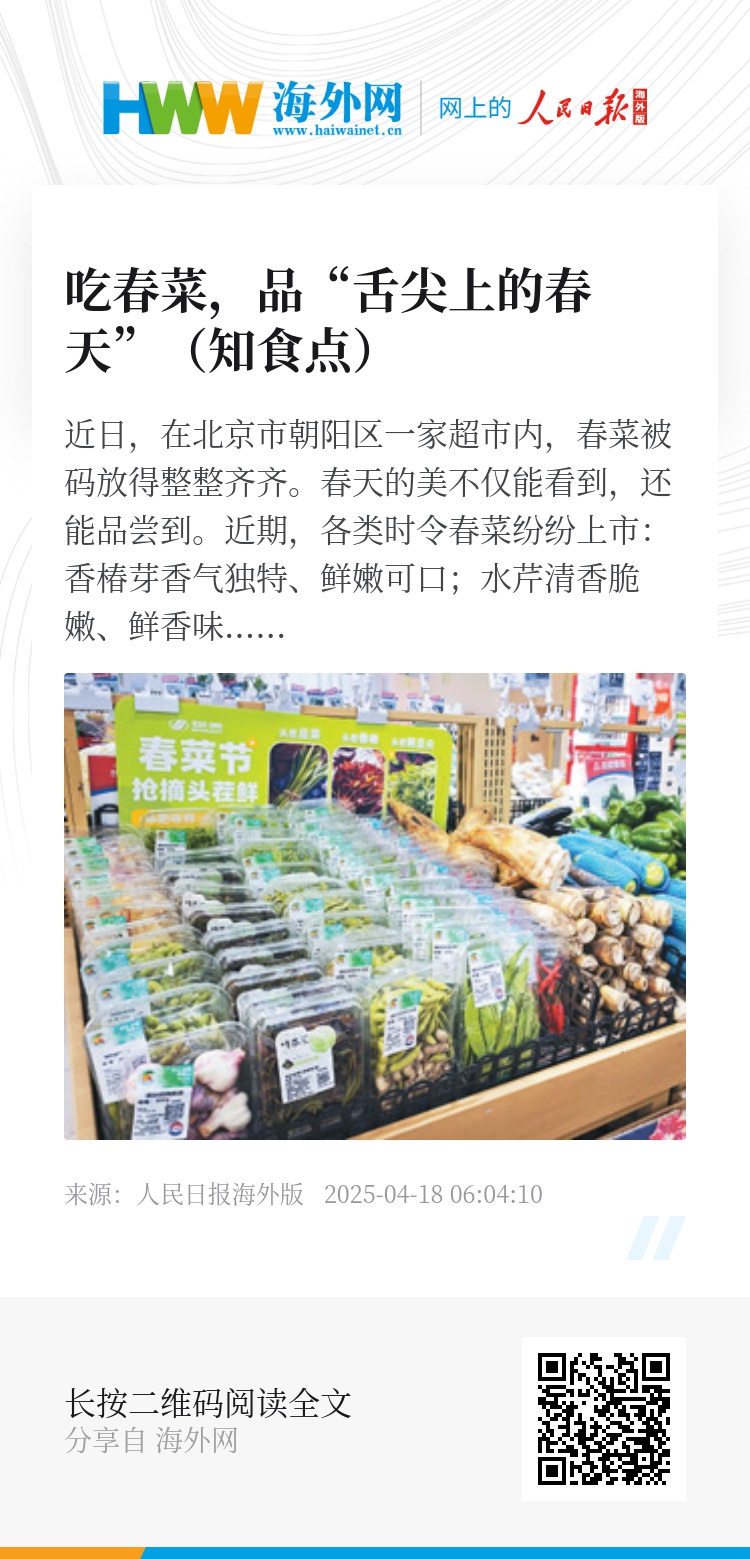 “我国自古就有吃春菜的传统。近年来,得益于冷链物流的快速发展,春菜又火热起来了。”吴佳表示,每到春回大地,来自全国各地的春菜走上千家万户的餐桌,供人们尝鲜。这不仅体现了人们对传统文化的传承,也寄托了人们对美好和健康生活的向往。