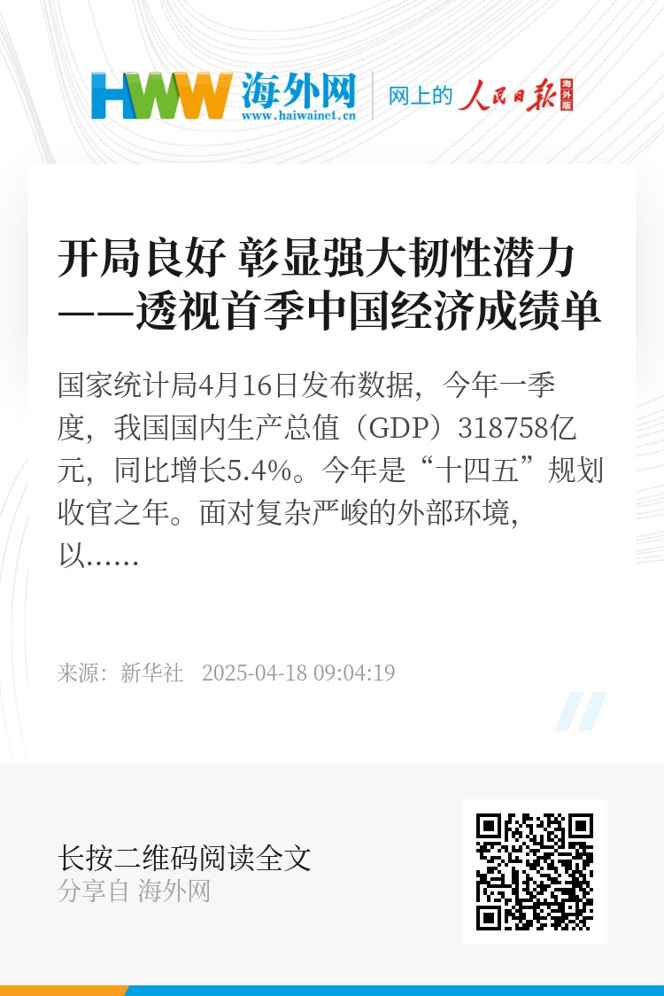 首季中国经济成绩单上一组组数字,凸显了中国经济的强大韧性和潜力——