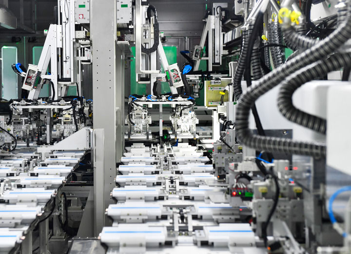 广西柳州市瑞浦赛克动力电池有限公司电芯装配车间(2024年5月10日摄)。新华社记者 金皓原 摄