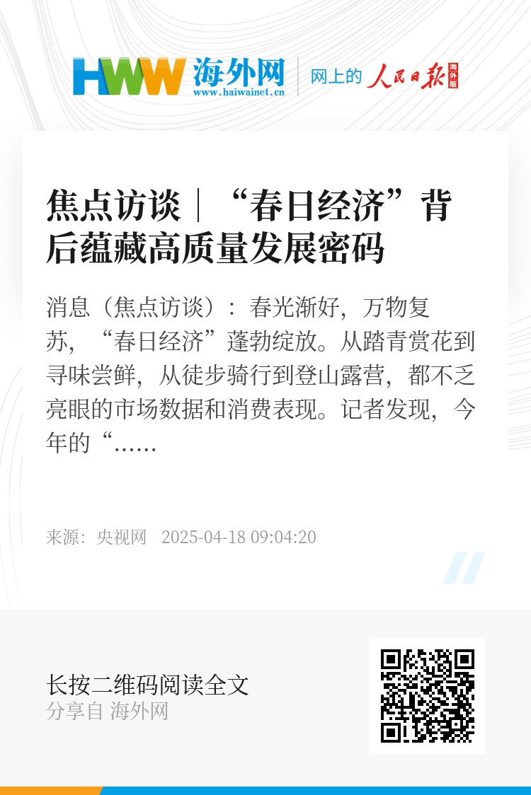 以“春”为名的消费大餐,不仅折射出中国消费升级的强劲动能,更成为内需增长新周期的生动注脚。春潮涌动处,扬帆正当时。当政策红利与技术创新叠加共振,消费升级不仅成为经济复苏的“稳定器”,更蕴藏着高质量发展的密码。时不我待,抓住春日经济的“窗口期”,不断推出新的消费产品,新的消费场景,为经济高质量发展注入盎然春意。