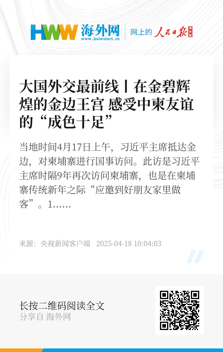当地时间4月17日上午,习近平主席抵达金边,对柬埔寨进行国事访问。此访是习近平主席时隔9年再次访问柬埔寨,也是在柬埔寨传统新年之际“应邀到好朋友家里做客”。