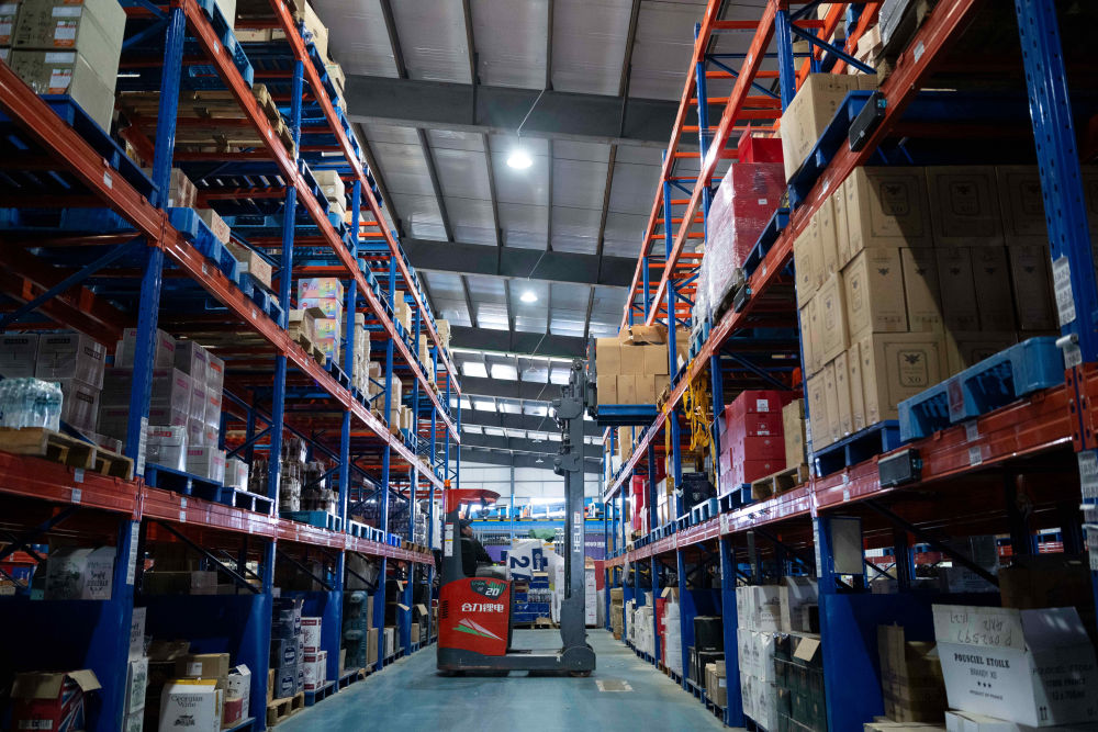 3月21日,在中国(黑龙江)自由贸易试验区黑河片区,黑河跨境电商园区智能仓储物流中心的工人在搬运货物。新华社记者 谢剑飞 摄