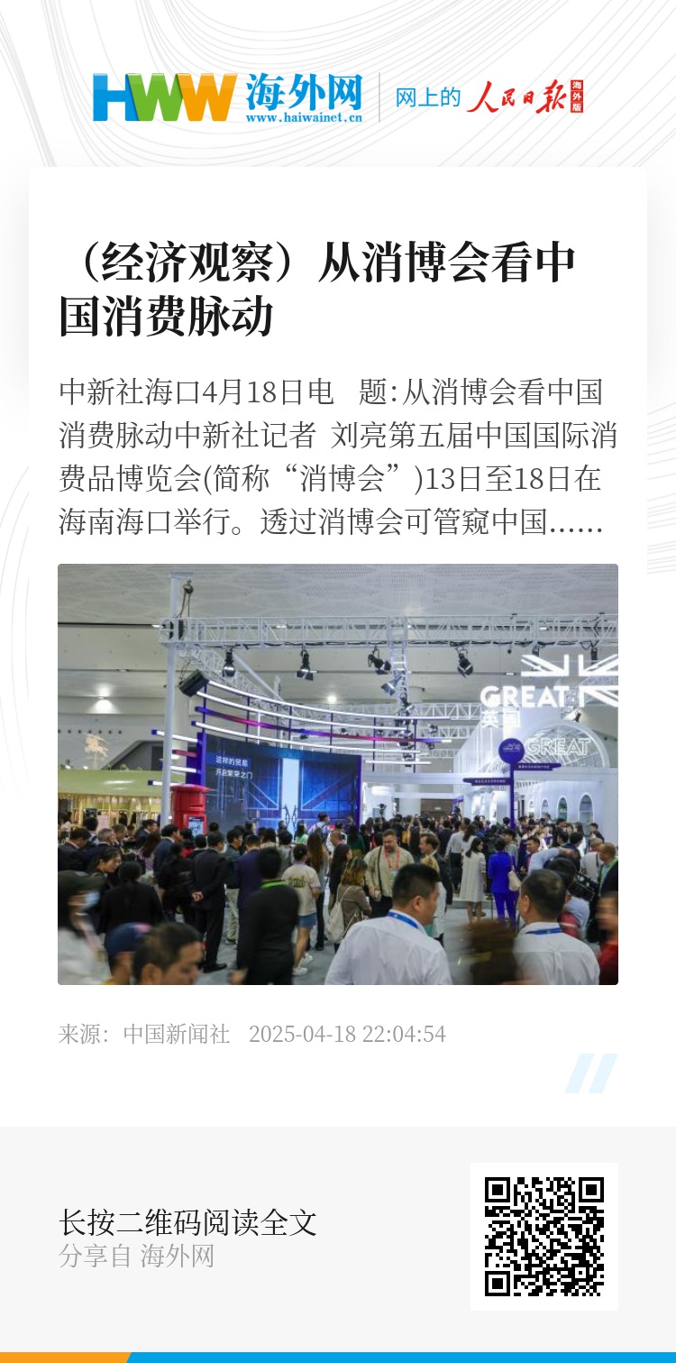中新社海口4月18日电 题:从消博会看中国消费脉动