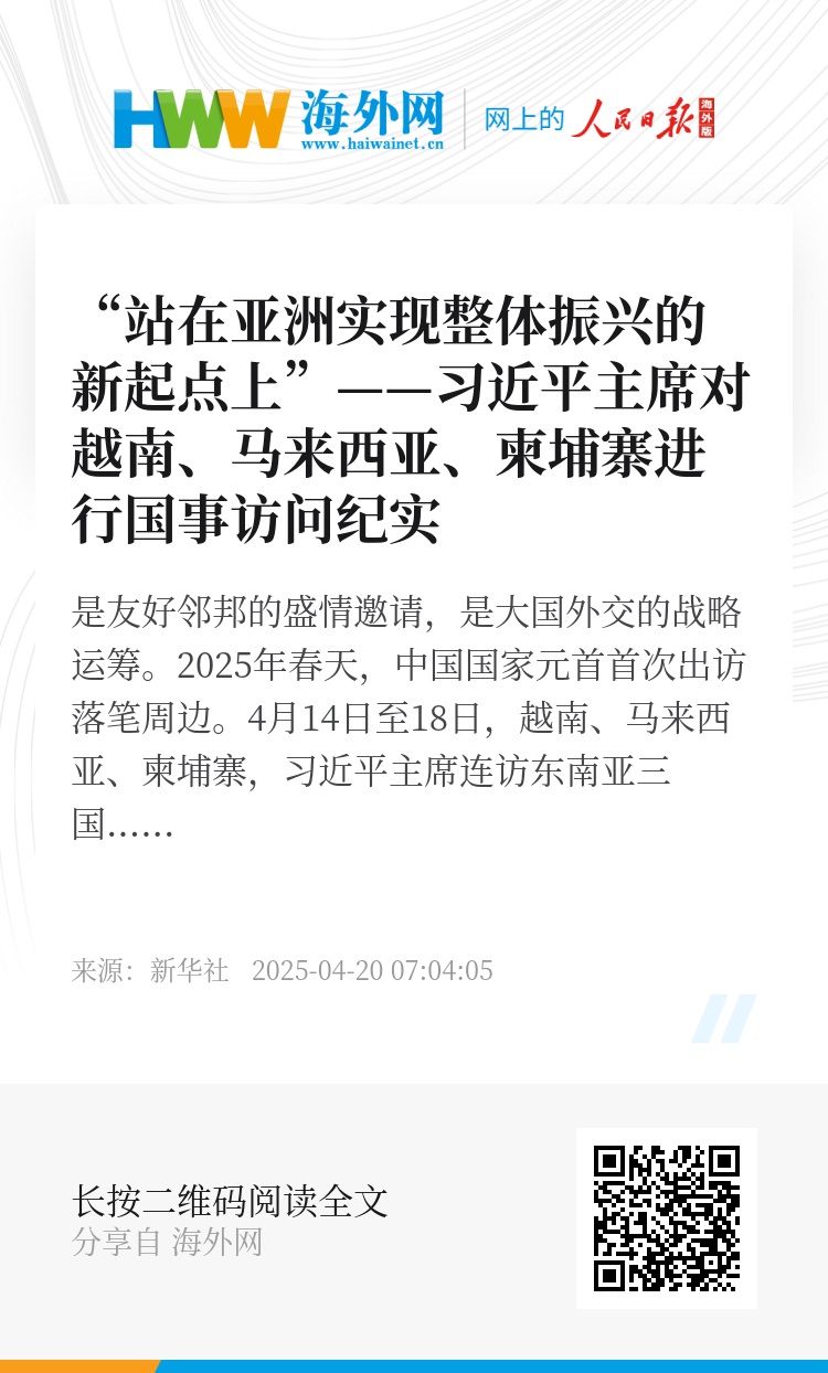 4月14日至18日,越南、马来西亚、柬埔寨,习近平主席连访东南亚三国,在广袤山海间,铺展出一幅亲诚惠容的壮美画卷。