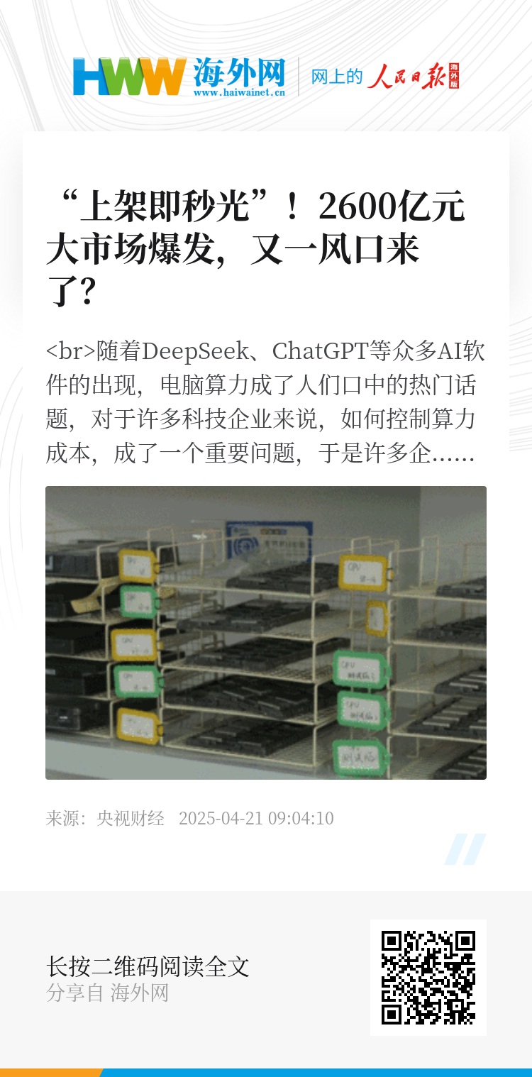 随着DeepSeek、ChatGPT等众多AI软件的出现,电脑算力成了人们口中的热门话题,对于许多科技企业来说,如何控制算力成本,成了一个重要问题,于是许多企业选择了以租代买的新方式。记者发现,市场需求增大,在电脑设备租赁行业,不少高性能机型更是出现“上架即秒光”的行情。