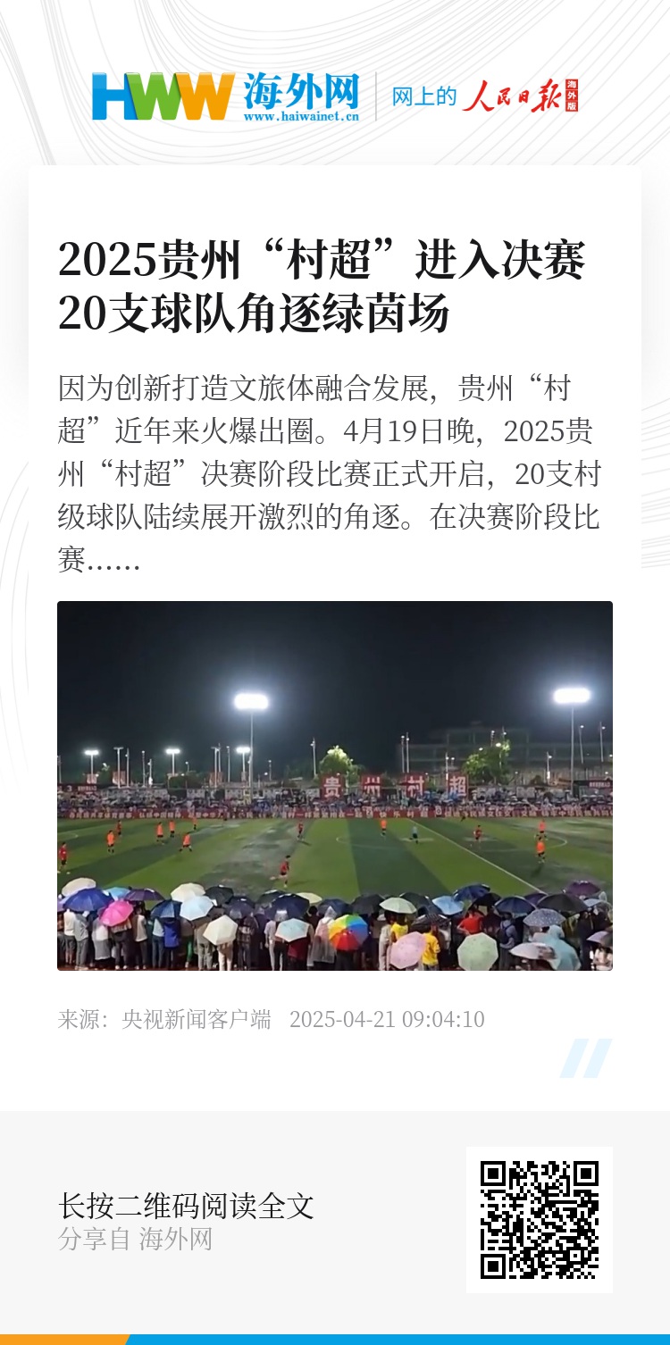 因为创新打造文旅体融合发展,贵州“村超”近年来火爆出圈。4月19日晚,2025贵州“村超”决赛阶段比赛正式开启,20支村级球队陆续展开激烈的角逐。
