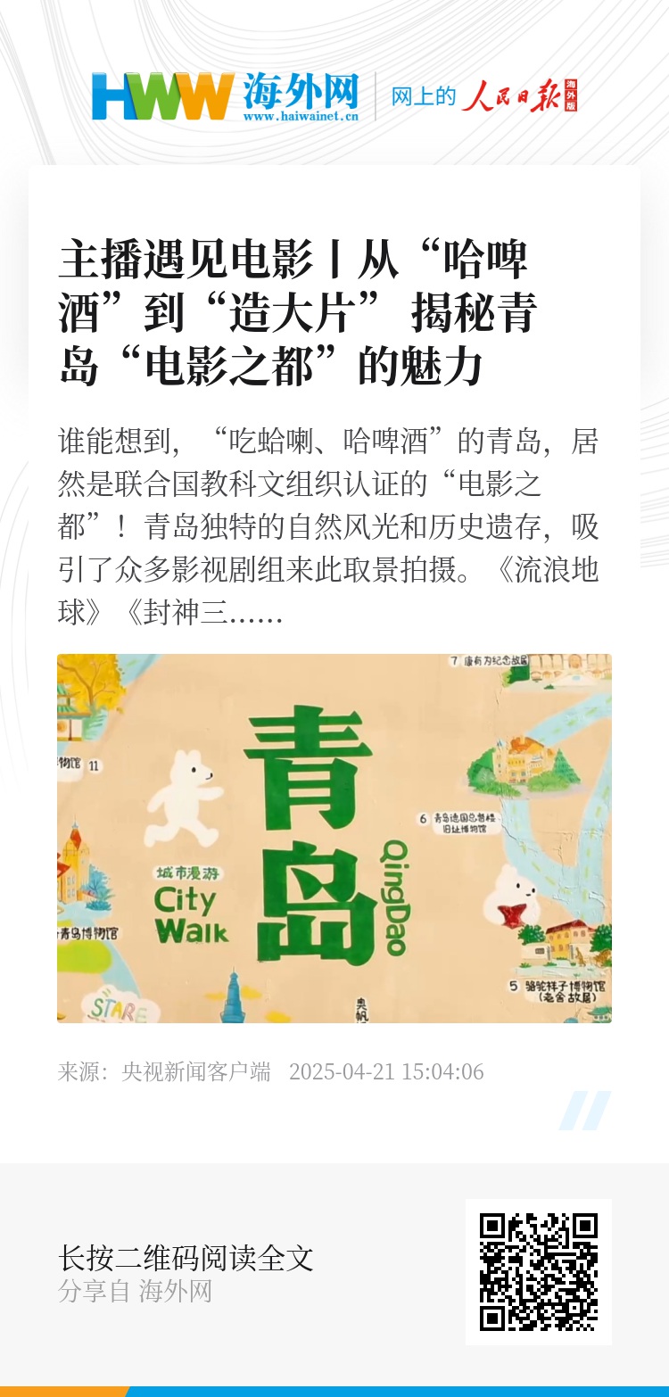 谁能想到,“吃蛤喇、哈啤酒”的青岛,居然是联合国教科文组织认证的“电影之都”!青岛独特的自然风光和历史遗存,吸引了众多影视剧组来此取景拍摄。《流浪地球》《封神三部曲》《刺杀小说家》等不少“大片”也都诞生于此。