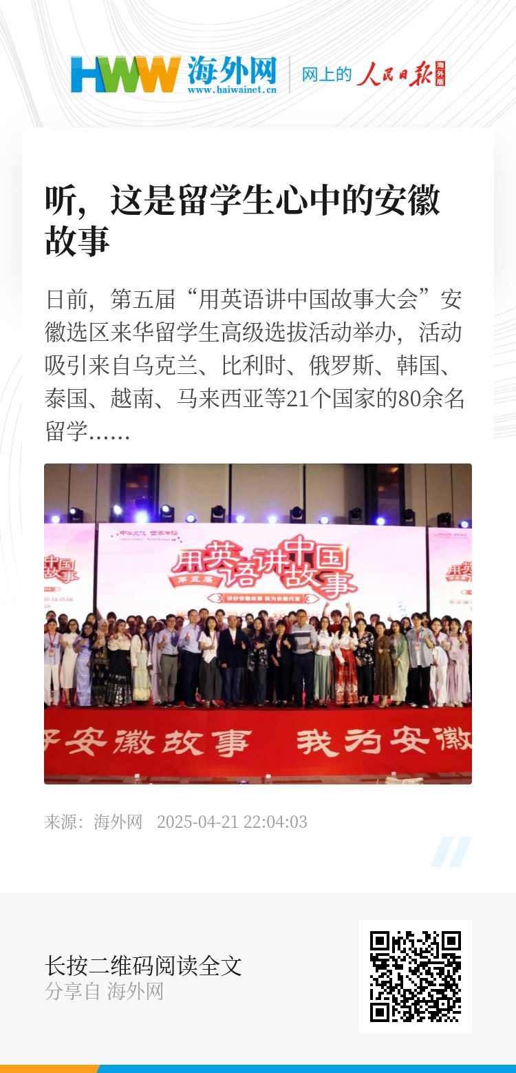 活动结束后,多位留学生表示,此次活动让他们对中国、对安徽有了更全面的认识,也激发了他们继续学习中文和深入了解中国文化的兴趣。一位留学生说:“通过讲述中国故事,我发现自己对中国文化的理解更加深刻了。希望未来有更多这样的机会,让我更好地融入中国社会,与中国朋友交流。”