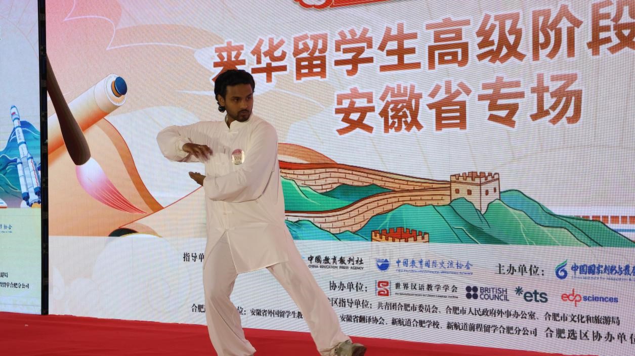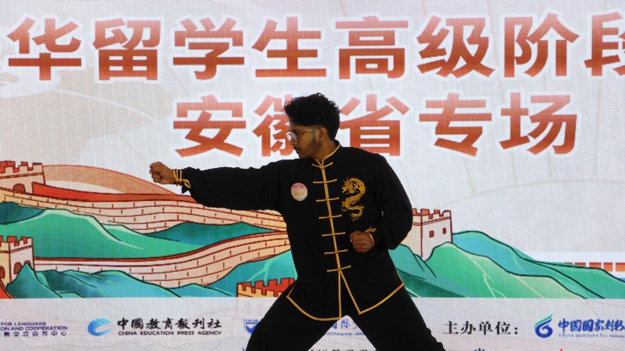 在活动现场,留学生们不仅饱含深情地讲述了他们对中国文化的理解,还通过多种艺术形式进行了精彩演绎。有留学生表演了黄梅戏婉转的唱腔与京剧《霸王别姬》的经典对白,将《女驸马》中女驸马的忠贞勇敢与虞美人的果决刚烈在追光灯下交织,展现出一场跨越时空的对话。在功夫表演中,太极的圆融气韵与南拳的刚劲力道形成鲜明对比,生动地展现了动静相生的东方哲学。古筝的琴弦流淌出《高山流水》的千年韵律,与古典中国舞的水袖翩翩共同谱写了一篇动人的视听诗篇。在舞狮舞剑表演中,留学生们操控着彩狮完成腾跃采青的动作,双剑对练的寒光与铿锵的锣鼓声相互碰撞,展现出非遗文化的当代活力。这些来自不同肤色、不同文化背景的留学生们,用他们的演出勾勒出一幅文明交融的画卷,让活动现场宛如一场微型“文化博览会”。