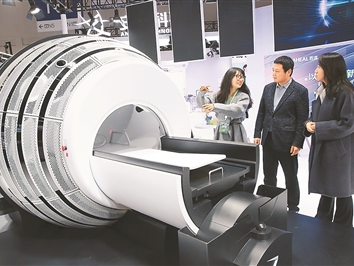 日前,2025中国医学装备展览会在重庆国际博览中心举行。图为观众在参观“放射外科机器人”产品。该机器人是专门针对颅内和头颈部肿瘤、病变的放射外科系统,也是全球首创完全自屏蔽功能的放疗设备。