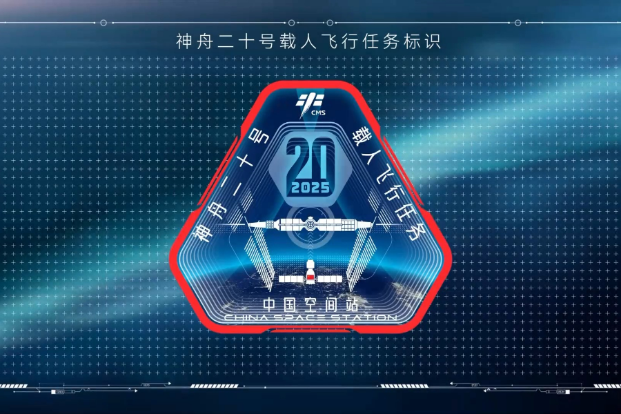 神舟二十号载人飞行任务标识,融合传统与创新,以稳定三角形为基,象征航天人在经验基础上攀登新高峰。