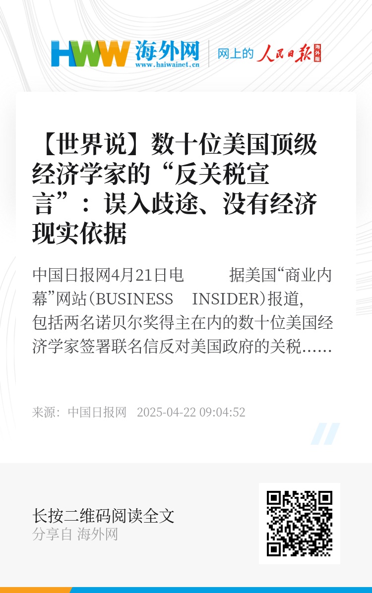 尽管现状堪忧,但联署者仍对理性终将胜出表示乐观:“我们坚信,健全的经济原理、实证证据和历史警示终将战胜当下的保护主义迷思。”