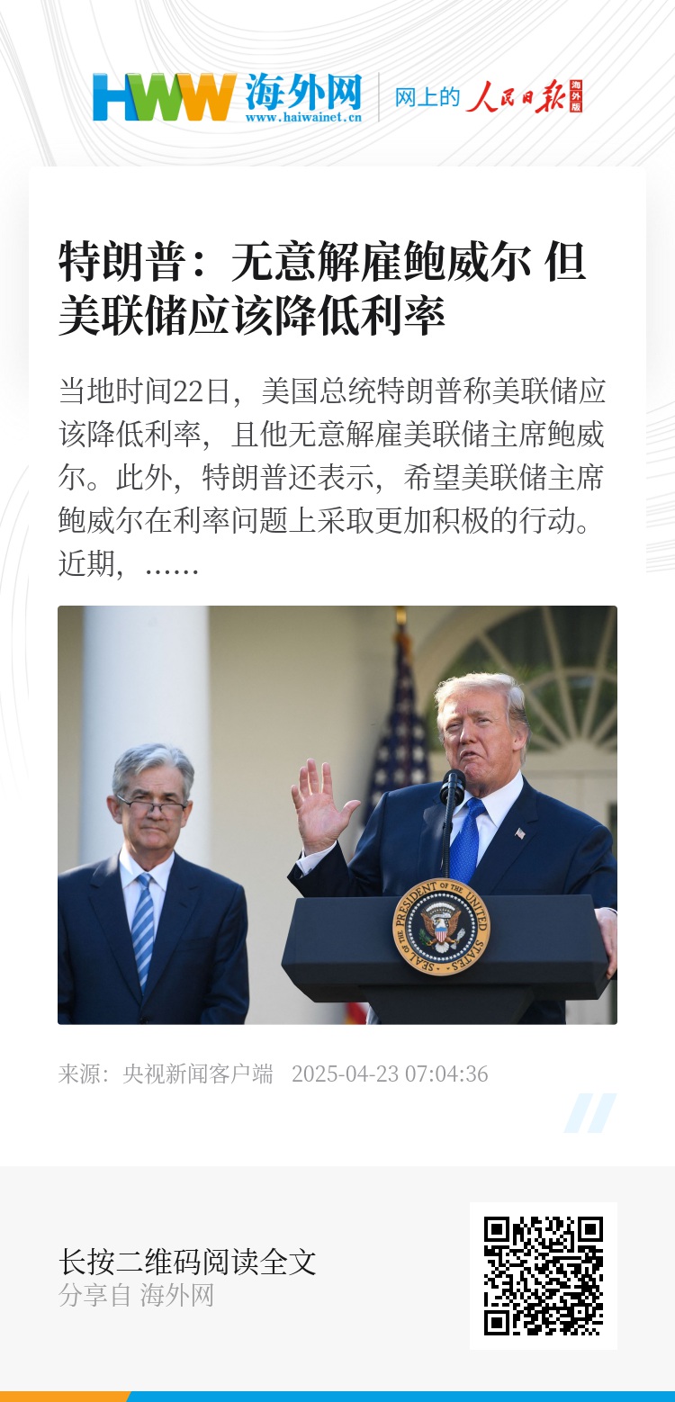 近期,美国总统特朗普施压美联储降息。在第一任期中,特朗普就频繁公开批评美联储及美联储主席鲍威尔,经常敦促美联储降息。开启第二任期以来,特朗普也多次对鲍威尔施压,要求其降息。4月17日,特朗普再度对鲍威尔施压,要求美联储立即降息。特朗普还称,鲍威尔的行动总是“又迟又错”。他说,行动太慢的鲍威尔早该像欧洲央行一样降息了,现在更应该立即降息。他还说,鲍威尔“越早走人越好”。而特朗普威胁解职鲍威尔的言论令市场不安。据彭博社21日报道,由于担心美国总统特朗普可能解雇美联储主席杰罗姆·鲍威尔,引发投资者抛售美国股票、债券和美元,金价飙升至历史新高。