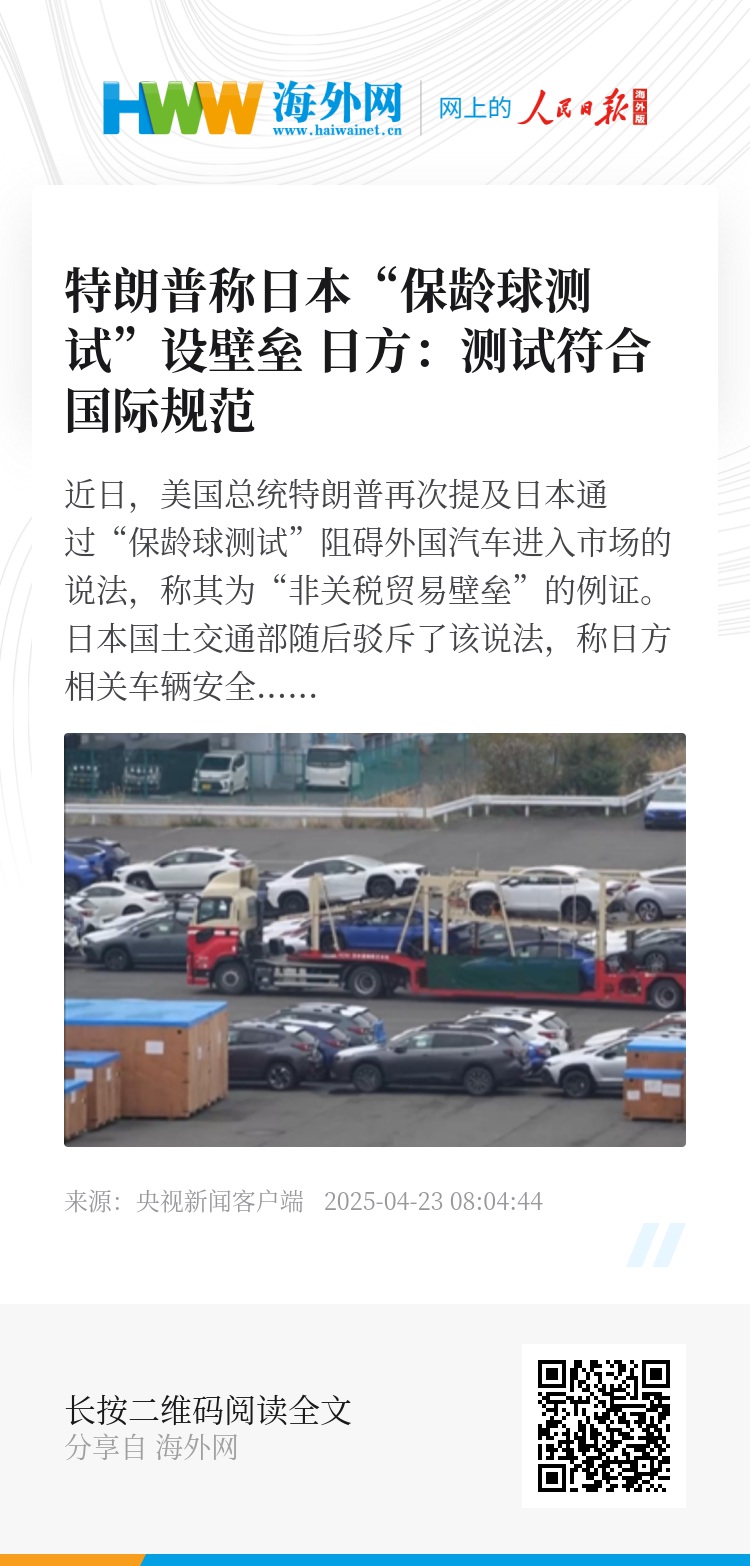 近日,美国总统特朗普再次提及日本通过“保龄球测试”阻碍外国汽车进入市场的说法,称其为“非关税贸易壁垒”的例证。日本国土交通部随后驳斥了该说法,称日方相关车辆安全检测均符合国际规范。