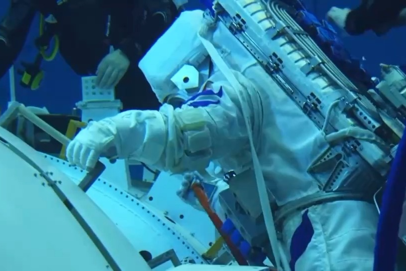 崔霞:这些训练,有些您一定不陌生。出舱活动训练中的模拟失重水槽训练大家最熟悉了。在训练时,航天员身着水下训练服,在模拟太空失重环境下,用双手控制身体姿态,要完成舱外转移、设备组装等操作。