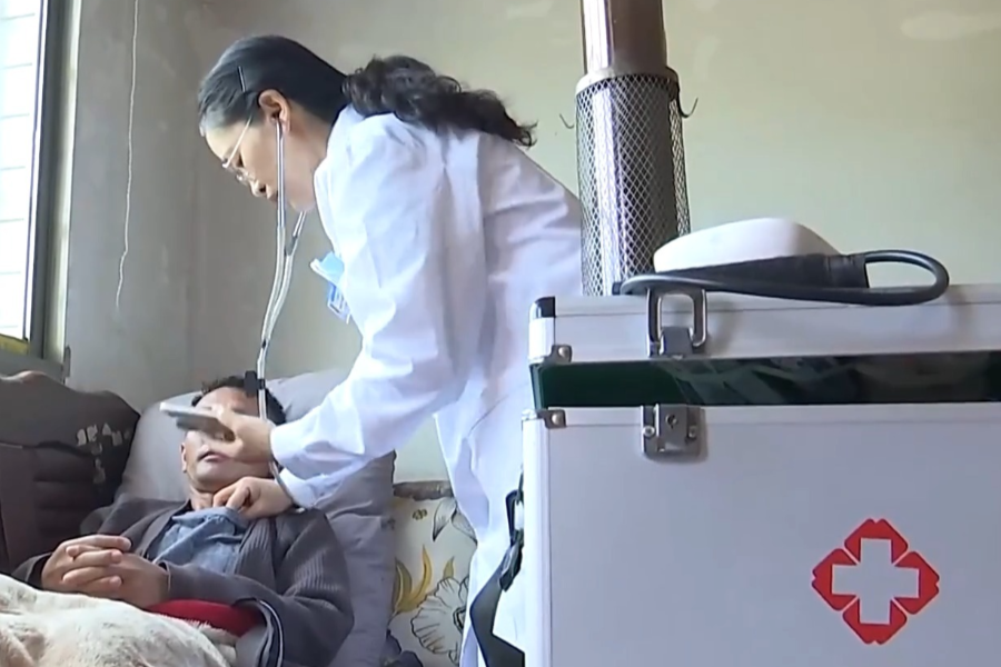 处理完烫伤,一个电话又将杨世霞叫出了门,她马不停蹄地赶往村民吴本良家里。村民吴本良几天前因突发心脏病紧急送往县医院,昏迷了十多天医生下了病危通知单,吴本良的妻子慌乱之际电话打给了她们最信任的杨世霞讨主意。