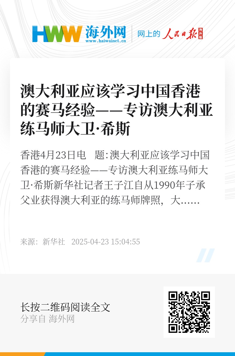 新华社香港4月23日电 题:澳大利亚应该学习中国香港的赛马经验——专访澳大利亚练马师大卫·希斯