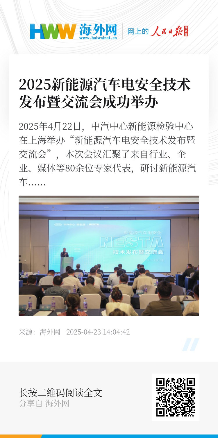2025年4月22日,中汽中心新能源检验中心在上海举办“新能源汽车电安全技术发布暨交流会”,本次会议汇聚了来自行业、企业、媒体等80余位专家代表,研讨新能源汽车电安全领域的前沿技术趋势,交流新能源汽车电磁、充电、热管理等关键领域验证技术,为新能源汽车电安全技术发展注入新动能。