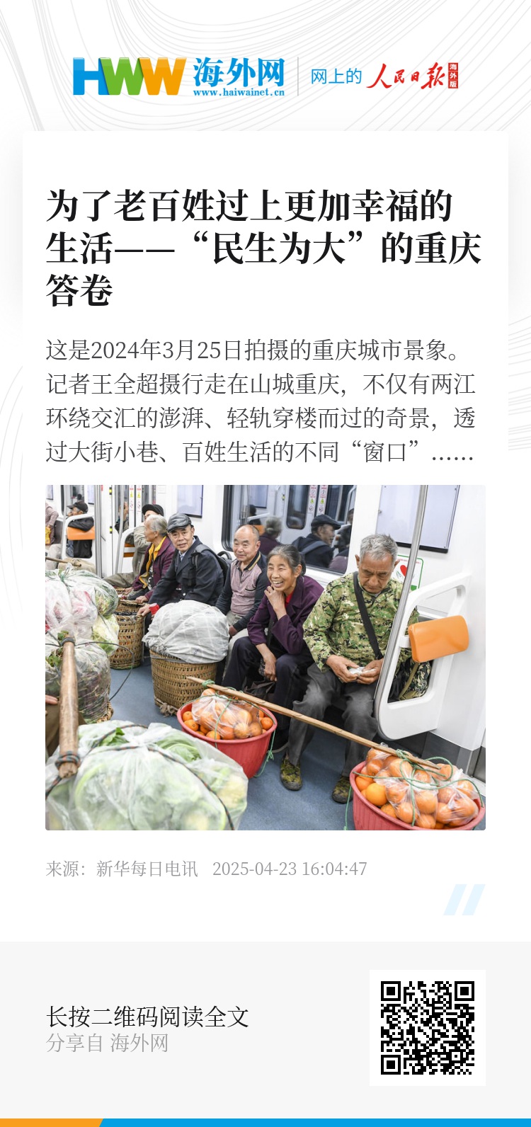 民之所望,政之所向。在重庆,党委政府正持续用更多的财力物力保障民生、以更精准更细致的举措改善民生,一件件民生实事,凝聚成一本本滚烫的民生账本,描绘出一幅幅暖心的民生图景,让百姓的获得感幸福感安全感不断增强。