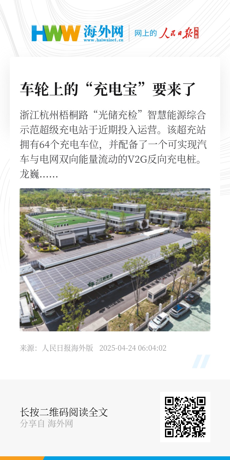 浙江杭州梧桐路“光储充检”智慧能源综合示范超级充电站于近期投入运营。该超充站拥有64个充电车位,并配备了一个可实现汽车与电网双向能量流动的V2G反向充电桩。