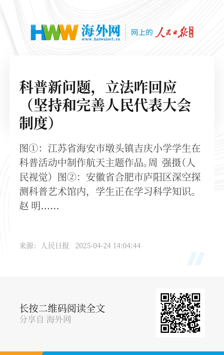 “这将与保护弱势群体相关规定一起,弥合不同群体在科学知识、数字资源获取、运用等方面的素养与技能鸿沟,促进全民共享科技发展成果。”中国科协科普部负责人介绍,下一步,将探索流动科普服务新模式,进一步推进基层科普服务均等化。