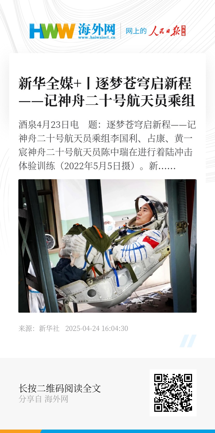 新华社酒泉4月23日电 题:逐梦苍穹启新程——记神舟二十号航天员乘组