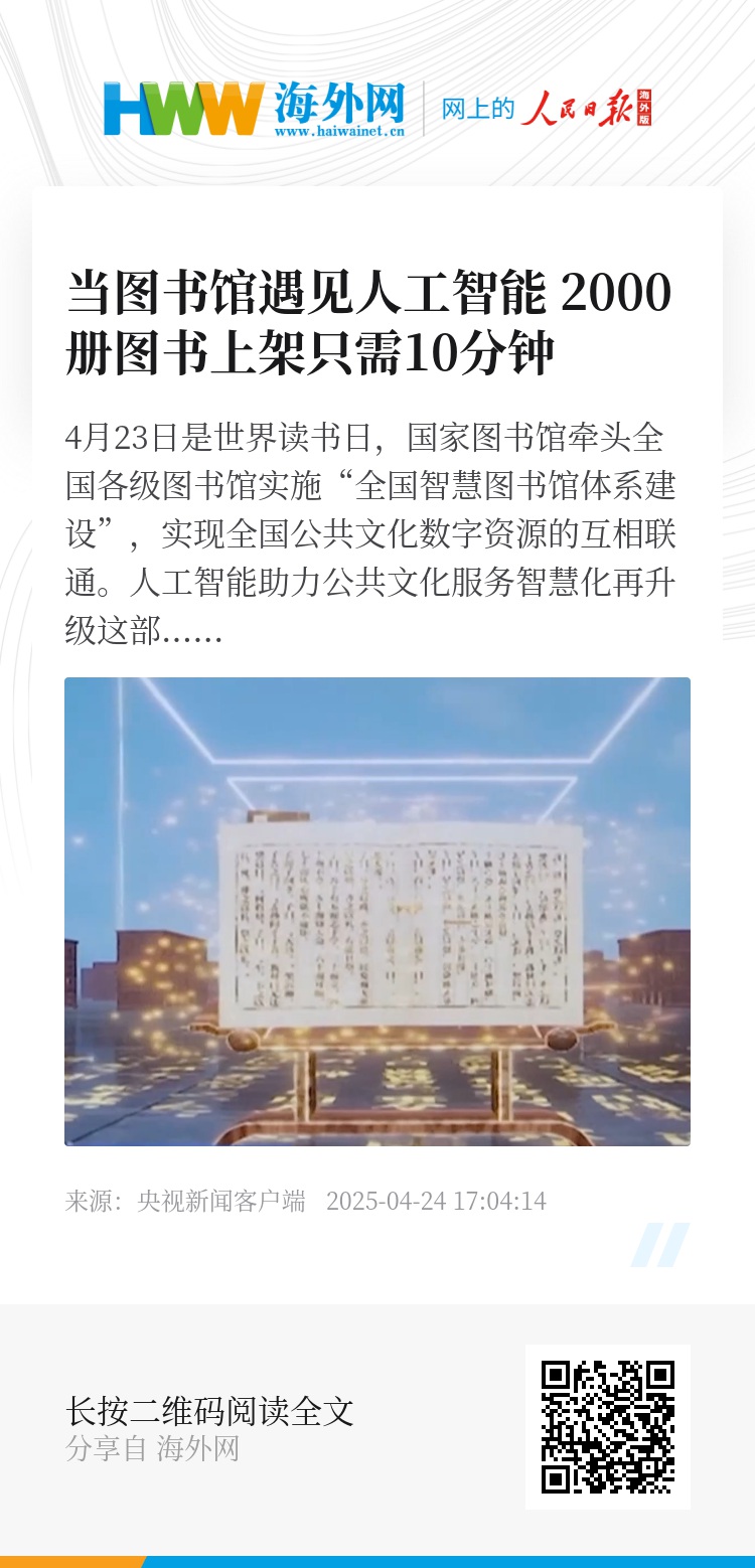 4月23日是世界读书日,国家图书馆牵头全国各级图书馆实施“全国智慧图书馆体系建设”,实现全国公共文化数字资源的互相联通。
