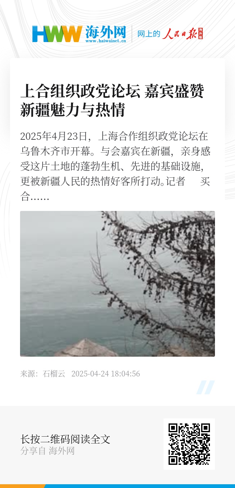 2025年4月23日,上海合作组织政党论坛在乌鲁木齐市开幕。与会嘉宾在新疆,亲身感受这片土地的蓬勃生机、先进的基础设施,更被新疆人民的热情好客所打动。