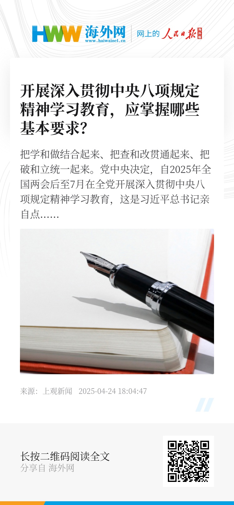 党中央决定,自2025年全国两会后至7月在全党开展深入贯彻中央八项规定精神学习教育,这是习近平总书记亲自点题、亲自部署的一项重要工作,也是今年党建工作的一项重点任务。深刻把握学习教育的重大意义与基本要求,对开展好贯彻落实好中央八项规定精神至关重要。