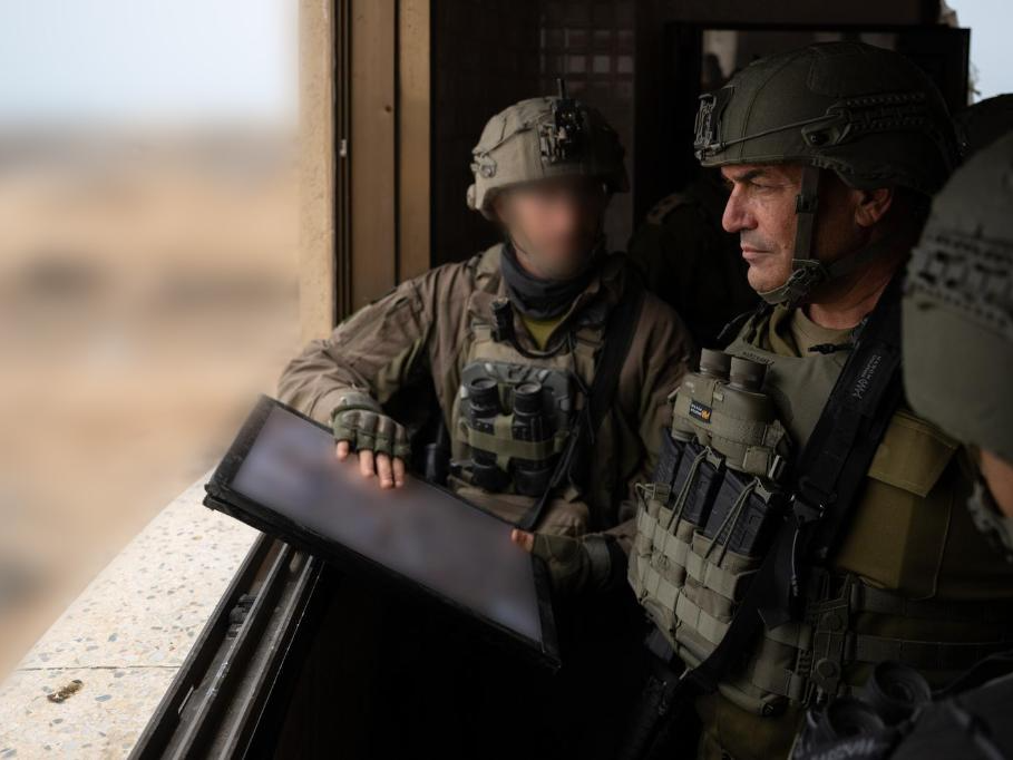 4月24日,以色列国防军总参谋长扎米尔视察位于加沙地带南部的以军地面部队。新华社发(以色列国防军供图)